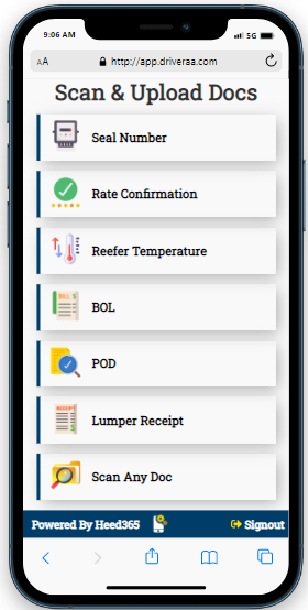 This option under “Scan docs” on Driveraa - 365 Mobile App helps the driver to